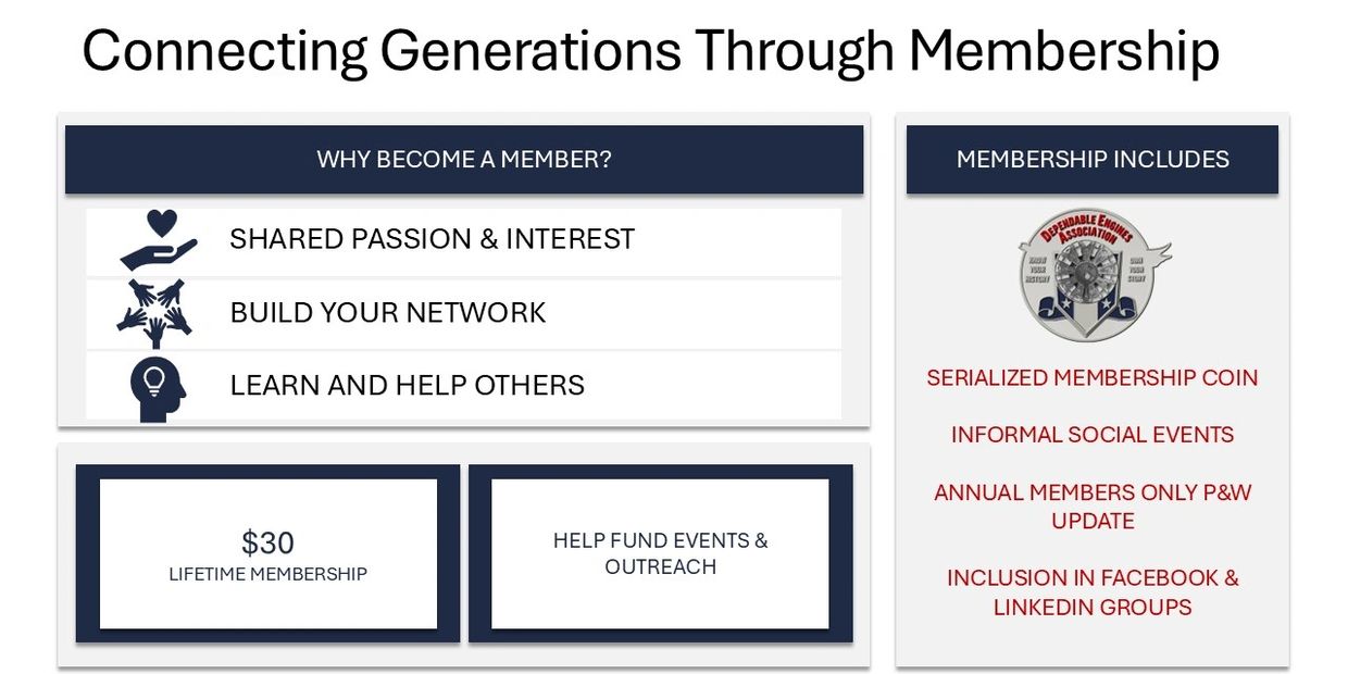 Your $30 donation earns you a lifetime membership to the Dependable Engines Association.